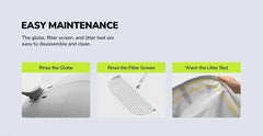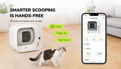 - Valdymas išmaniąja programėle – nustatykite valymo grafiką, sekite kačių apsilankymus ir stebėkite jų svorį nuotoliniu būdu.