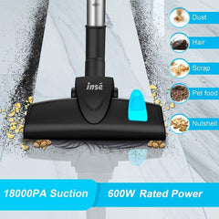 INSE I5 laidinis dulkių siurblys su 600 W varikliu pasižymi stipria 18 KPA siurbimo galia. Puikiai tinka pašalinti dulkes, virtuvės šiukšles, naminių gyvūnų plaukus, maisto likučius, riešutų trupinius ir kt. (Įprasta, kad ilgai veikdamas variklis gali įkaisti.)