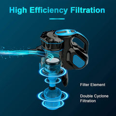 Filtravimo sistema susideda iš tinklinio filtro, cikloninio viršutinio ir apatinio filtravimo. Efektyviai sulaiko skirtingo dydžio dulkes ir nešvarumus, apsaugo variklį nuo užsikimšimo ir prailgina prietaiso tarnavimo laiką.