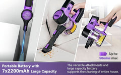 Integruota 2200mAh baterija leidžia siurbti net iki 50 minučių. Puikiai tinka didesniems namams – viską išvalysite vienu įkrovimu.