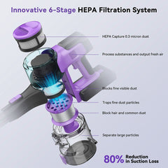INSE S10 – tai aukštos klasės dulkių siurblys su 350W / 140AW bešepetėliu varikliu, kuris sukuria stiprią oro srovę iki 26KPA. Lengvai susiurbia gyvūnų plaukus, šiukšles, smėlį ar net kačių kraiką. Trys galios režimai leidžia prisitaikyti prie įvairių paviršių – nuo kilimų iki grindų, laiptų, lubų ar automobilių salonų.