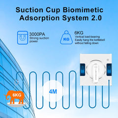 Dėl didelės siurbimo galios jis tvirtai prisitvirtins prie stiklo, lengvai išvalys sunkiai įveikiamas dėmes, nepažeisdamas stiklo. Be to, jis turi apsaugos nuo kritimo funkciją.