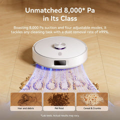 Narwal Freo S pasižymi net 8000 Pa siurbimo galia, kuri efektyviai pašalina nešvarumus nuo įvairių grindų tipų. DC variklis užtikrina didelį našumą ir ilgaamžiškumą, o optimizuotas oro kanalų dizainas sumažina energijos nuostolius, padidindamas valymo efektyvumą. Net 4 siurbimo režimai (Tylus, Standartinis, Galingas, Kiliminis) leidžia pritaikyti valymą pagal jūsų poreikius.