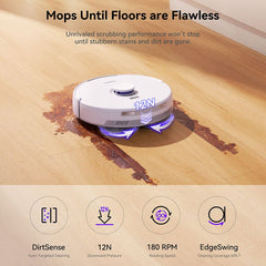 - 2-in-1 siurbimas ir plovimas: Siurbia ir plauna vienu metu, efektyviai pašalindamas dulkes, plaukus ir nešvarumus.