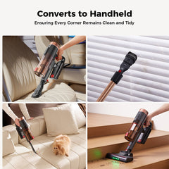 „Proscenic P11 Ultra“ belaidis dulkių siurblys užtikrina pramoninio lygio 40 000 Pa siurbimą, efektyviai pašalindamas nešvarumus iš kilimų, kietų grindų ir augintinių plaukų.