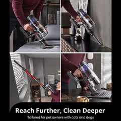 Mėgaukitės efektyviu valymu su 550 W galia ir net 45 kPa siurbimo jėga. Šis galingas belaidis dulkių siurblys lengvai susitvarko su dulkėmis, nešvarumais ir įsisenėjusiais gyvūnų plaukais ant įvairių paviršių – nuo kietų grindų iki kilimų.